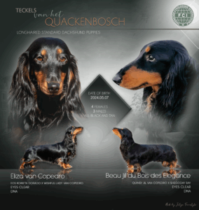 Vonya van Copedro x Beau Jil du Bois des Elegace Op 7 mei 2023 zijn er 7 pups geboren waarvan 3 reuen en 4 teven.