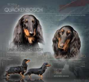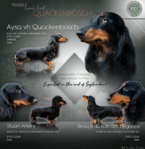 Vonya van Copedro x Beau Jil du Bois des Elegance x Stuart Amery Op 27 september 2023 zijn er 7 pups geboren waarvan 3 reuen